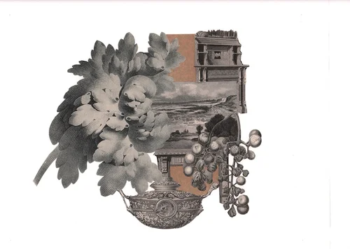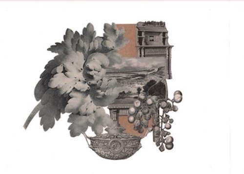 collage with antique engravings on book pages from Ornamental Annuals by Mrs. Loudon 1843
